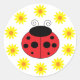 A cute ladybug design surrounded by yellow daisies on a round sticker!