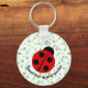 Ladybug on Leafy Background Design Keychain with customizable text. For no text, remove the sample text and leave blank.
