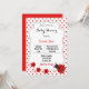 Baby shower invitation with cute ladybug theme and polkadot background.