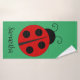 Ladybug Design Beach Towel with customizable background colour and text.