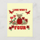 A teddy bear ladybug, red heart flowers, and text text that reads "Look Who's Four" on a cute 4th birthday design on 4th birthday Tshirts, mugs, cards, stickers, and more.