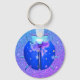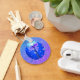 An adorable blue, turquoise and purple ladybug. She is embellished with stars and a purple blue chiffon ribbon. Set on a purple and blue glitter background.