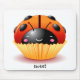 A sweet little ladybug cupcake on a mousepad.