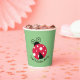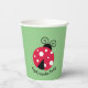 Ladybug with White Dots Design Paper Cups with customizable text and background colour.