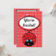 Adorable red and black polka dot cartoon lady bug with big eyes, curly antenna and licking her smiling lips is a fun, cheery invitation to your next birthday, anniversary or other party celebration. Customize this invitation with your own information to suit any occasion!