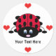 Des autocollants amusants avec un joli Ladybug aux yeux bleus entourés de petits coeurs rouges. Ces autocollants peuvent être personnalisés avec un nom ou ajouter un message. Vous pouvez même ajouter une couleur arrière - plan. Un autocollant d'amour pour la Saint-Valentin ou pour toute occasion. Restez-les sur des projets artisanaux comme le scrapbooking ou un carnet. Cette conception de coccinelle est facile à customiser, alors commencez à ajouter vos idées. Ladybug with Hearts © Penny's Design Shop