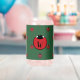 Four types of ladybugs; seven-spotted, two-spotted, pink-spotted, and Asian; make a polka dot pattern on a green background. Also called ladybirds or lady beetles, these insects protect farms and gardens from pests, particularly aphids. Customize the monogram with your initial to make this drinkware uniquely your own. This glassware is also available in rocks and stemless wineglass styles.