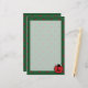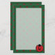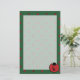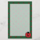 Four types of ladybugs; seven-spotted, two-spotted, pink-spotted, and Asian; make a polka dot pattern on a green background. Also called ladybirds or lady beetles, these insects protect farms and gardens from pests, particularly aphids. Customize the monogram on this stationery with your initial to make it uniquely your own.