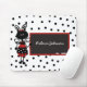 Cute teacher's mouse pad, with adorable graphics of a ladybug standing next to a chalkboard, against a black and white polka dot background. Personalize the white script text to suit your needs. Makes a great gift idea for the teacher on your list.