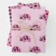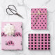 Ladybugs pink and black dots and squares wrapping paper sheet