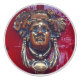 LADY'S HEAD BRASS DOOR KNOCKER (PHOTOG).ON RED CERAMIC KNOB