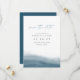 Elegant coastal wedding save the date features a sheer lagoon blue watercolor gradient along the bottom with a graceful curve that evokes the ebb and flow of the sea. Your wedding details appear in minimalist classic lettering with handwritten script accents. Use the back for sharing additional information with your guests.