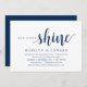 Carte d'invitation à thème écriture manuscrite bleu marine rustique moderne (avec titre de carte : Laissez l'amour briller). Elle est parfaite pour votre réception de mariage après élopement / fête de célébration après mariage. Ajoutez vos détails dans une police / lettrage noir assorti.