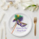 Set of eight 9” paper plates with an image of a beautiful purple, green and gold satin mask on a stick with coordinating feathers and ribbons, and the words “Laissez Les Bon Temps Rouler” (Let the Good Times Roll) in purple French script. See matching candy jar, espresso cup, flask, mug, pitcher, shot glass, teapot and coasters. See the entire Mardi Gras Plate collection in the FOOD/BEV | Dishes section.