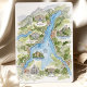 The coordinating back highlights a charming illustrated map of Lago di Como, complete with winding shoreline roads, tiny ferries, terracotta-roofed villages, iconic villas, and scenic landmarks. Labels such as Bellagio, Varenna, Lenno, Tremezzo, Como City, and Cernobbio make the design feel like a keepsake travel postcard - perfect for welcoming guests to an Italian lake celebration. All wording is fully customizable, making this suite ideal for destination weddings, weekend itineraries, or elegant European events that want venue-inspired stationery with a unique illustrated touch.