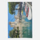 A beautiful view of Sirmione Castle on Lake Garda in Italy printed on a souvenir tea towel.