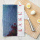 A beautiful view of the Rock of Garda on Lake Garda in Northern Italy printed on a souvenir tea towel.