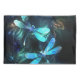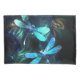 Two transparent, luminous, turquoise, artistically drawn dragonflies on night background with luminescent lake algae and fireflies. Glowing dragonfly.