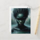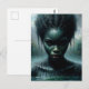 Postcard features eerie artwork of a supernatural entity haunting Lake Lanier. In this Southern gothic painting, a mysterious female figure emerges from the water for her creepy portrait, surrounded by abstract greenery with an ethereal glow that creates a haunting and captivating atmosphere. The dark, intense eyes and dripping hair add to the enigmatic and surreal quality of the scene. The woman appears to be African in heritage.
