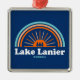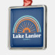 Adventure seekers visit the Lake Lanier area for paddling, hiking, fishing, sailing, cycling, camping, hiking, and climbing . This retro design has a rainbow and canoe.