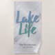 Lake Life with Name and Location beach towel. Faux whitewash wood background. Add your name and location/established date.