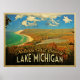 This beautiful lake shore scene of Lake Michigan says "Nature's Vast Beauty". Fall leaves and the blue green of the Great Lake with trees peeking out from the edges.
