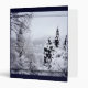 A photograph showing just a glimpse of the mountain lake through snow-covered fir trees. This landscape picture is digitally manipulated to look like a watercolor.