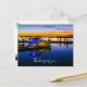 Thinking of you postcard featuring a beautifully bold and powerful sunset magic hour over Lake Ray Hubbard in Rockwall Texas, United States. A runabout boat with lights sits parked in the boat dock while a man stands enjoying the beautiful twilight hour. Looking for more prints or products? Feel free to visit my store: http://www.zazzle.com/timelessmomentsphtgy