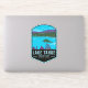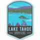 A retro park badge design of Coquette Island or Fannette Island in Lake Tahoe within Emerald Bay State Park in California, United States, USA
