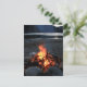 Photograph of an inviting-looking bonfire at a lakeside campsite