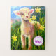 Little Lamb commends your child for finishing the puzzle. The puzzle can be customized with the child's name. Right now, the example reads, "Vivi", but certainly Kylar, Kiera or Matthew (or whomever) can be substituted. Pretty Spring pastel colors in the image are perfect for children.