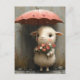 Lamb with Flowers and Umbrella in Rain Postcard