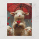 Lamb with Umbrella in Rain holding a Heart Postcard