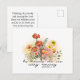 Postcard with inspirational quote scripture depicts a lovely flower garden art design with simple orange, pink and yellow flowers and green leaves, It features Bible Verse Lamentations 3:23, "His mercies are new every morning." The greeting, prayer can be personalized or deleted for a hand written message.