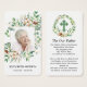 Strong and durable laminated funeral prayer cards. This white floral eucalyptus botanical design frames your loved one's photo perfectly. Their name and life dates are below. There is a greenery and white cotton wreath on the back with a cross in it and The Lord's Prayer is below. You can change this to your favourite prayer or poem - or your own personal remembrance.