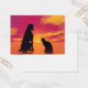 Silhouette noire d'un chat à côté du chien assis et regardant le beau coucher de soleil rouge
