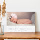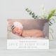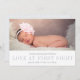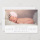Les cartes de faire-part de naissance simples et modernes présentent votre photo préférée horizontale ou orientée paysage dans un style de fond plein, avec une bande blanche sur le fond lisant "l'amour au premier regard" en gris clair, flanquée du nom et des statistiques de naissance de votre petit. Les annonces de naissance chic et neutre envers le genre s'inversent à un motif ikat subtil en gris et blanc.