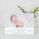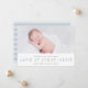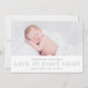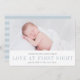 Les cartes de faire-part de naissance simples et modernes présentent votre photo préférée horizontale ou orientée paysage dans un style de fond plein, avec une bande blanche sur le fond lisant "l'amour au premier regard" en bleu clair, flanquée du nom et des statistiques de naissance de votre petit. Les annonces de naissance de bébé garçon à rebours vers un motif rayé subtil dans les tons bleu pâle assortis.