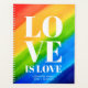 Ce planificateur Gay pride est décoré avec LOVE IS LOVE en typographie blanche et audacieuse sur un arrière - plan arc-en-ciel d'aquarelle rouge, orange, jaune, vert et bleu. Facile personnalisable avec votre nom et votre année. Aquarelle originale © Michele Davies.