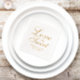 Les serviettes élégantes pour mariage à feuille personnalisées comprennent une citation "L'amour est doux" en script avec un design monogramme personnalisé qui peut être personnalisé avec les noms de la mariée et du marié et la date du mariage.