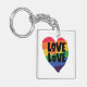 Cette oeuvre d'art comporte l'expression "L'amour est l'amour" conçue dans un coeur arc-en-ciel coloré.