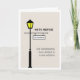 Elegant Lamp Post moving announcement featuring a lit lamp post with a hanging sign thereon where text can be customized. Ideal for giving notice of your new address. Further text can be added inside the card. © Morning 6