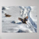 A photographic print of a pretty little Mallard female just after an elegant landing over a frozen river with her family member also female, during one of Ontario's coldest Winters ever recorded.