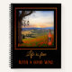 An artistic notebook featuring a painting of a summer landscape with red poppies at sunset with a bottle of wine. Beautiful for a wine lover.