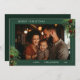 Landscape Green Merry Christmas Photo Card. Send festive cheer with this elegant landscape green Merry Christmas card, featuring a customizable family photo on the front and a personal message on back with your family members' first names on the back. The design includes charming Christmas branches adorned with pinecones and berries, adding a classic holiday touch. Perfect for sharing the joy of the season with loved ones.