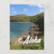 A aloha from maui Hawaii postcard. theme:lanscape, mountain, sea and beach, coconut tree. colour:blue, green, nature.