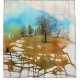Watercolor Inked Tree landscape artwork shown on shower curtain. This design is from one of my original inked backgrounds which I then drew inked trees on top of. Titled "Last Winds of Autumn II". Design by Jenn's Emporium.