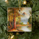 Beautiful trees, river and mountain in this landscape make a lovely ornament.