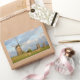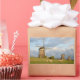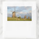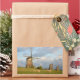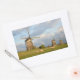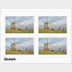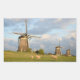 Photo sticker with three windmills and sheep looking into the camera under beautiful clouds in the sky in a lovely spring landscape in the countryside in the Netherlands.