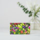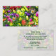 This business card advertising a landscaping and lawn care service is covered with masses of flowers in every colour of the rainbow. Enjoy the yellow, orange, pink, red, blue, purple and white floral pattern set on a background of green leaves on the front and the back. When viewing this, one is reminded of a French Impressionist painting. Customize all text to suit your business needs.